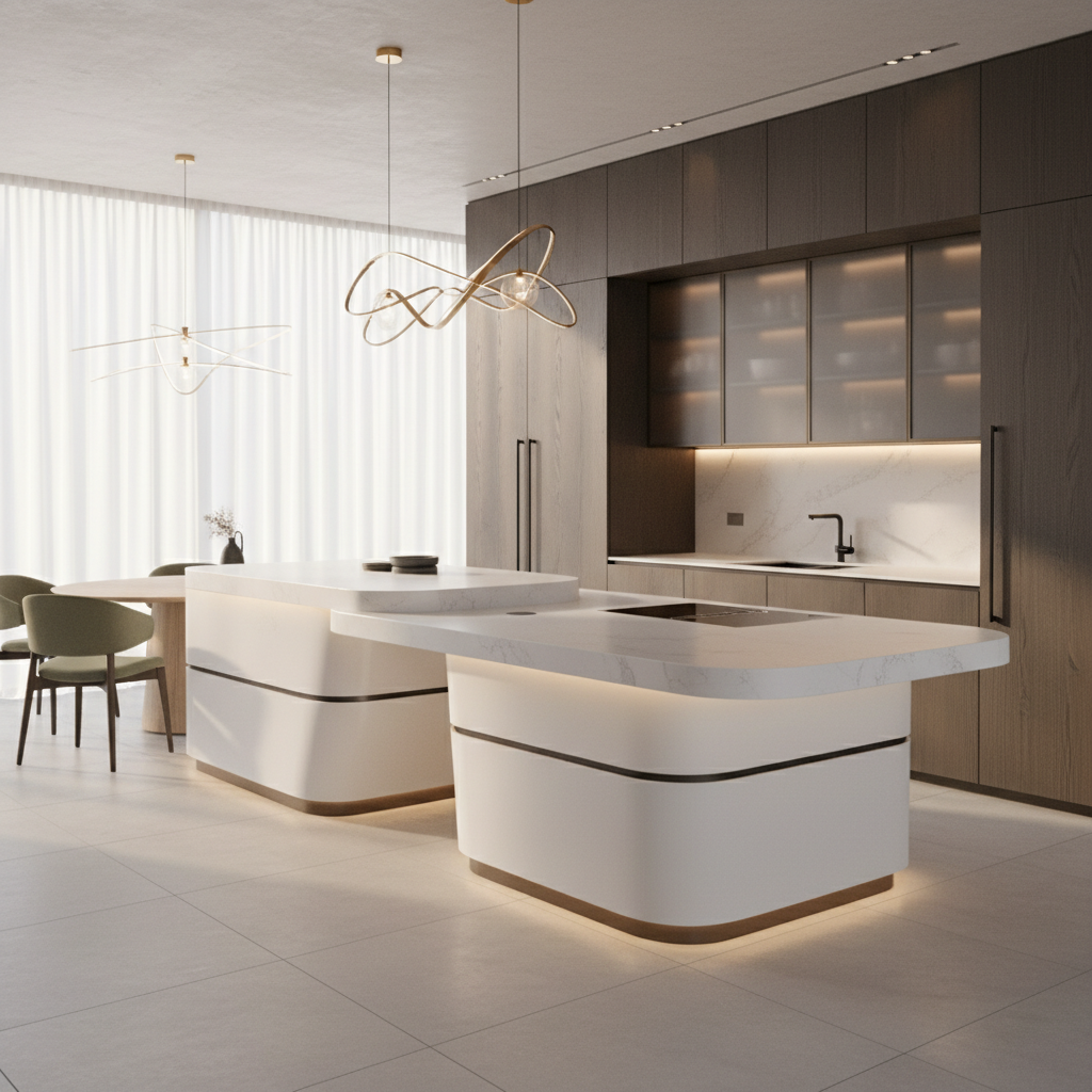 Kitchen island shapes are evolving in 2025 due to several factors reflecting modern lifestyles. Open-concept living spaces have become increasingly popular, necessitating island designs that facilitate social interaction and seamless flow between the kitchen and living areas. Moreover, contemporary homes demand more functional kitchen spaces, integrating features like built-in appliances, charging stations, and ample storage. These evolving needs drive designers to innovate beyond traditional rectangular islands, exploring shapes that maximize efficiency and adapt to diverse spatial configurations, ultimately enhancing the kitchen’s role as a central hub for both cooking and gathering.